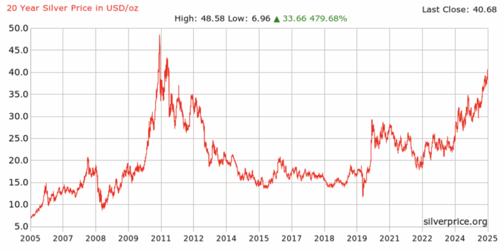 Looking back, silver’s last sustained period above $40 was during the commodity boom of 2011, when it briefly touched nearly $50 per ounce before a sharp correction. Prior to that, another major peak occurred in 1980, driven by the Hunt brothers’ attempt to corner the market.